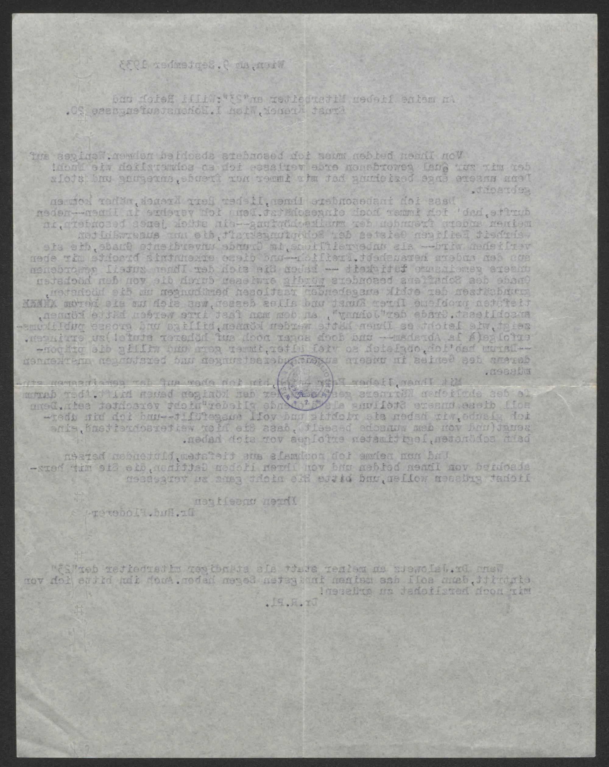 Brief an Ernst Krenek