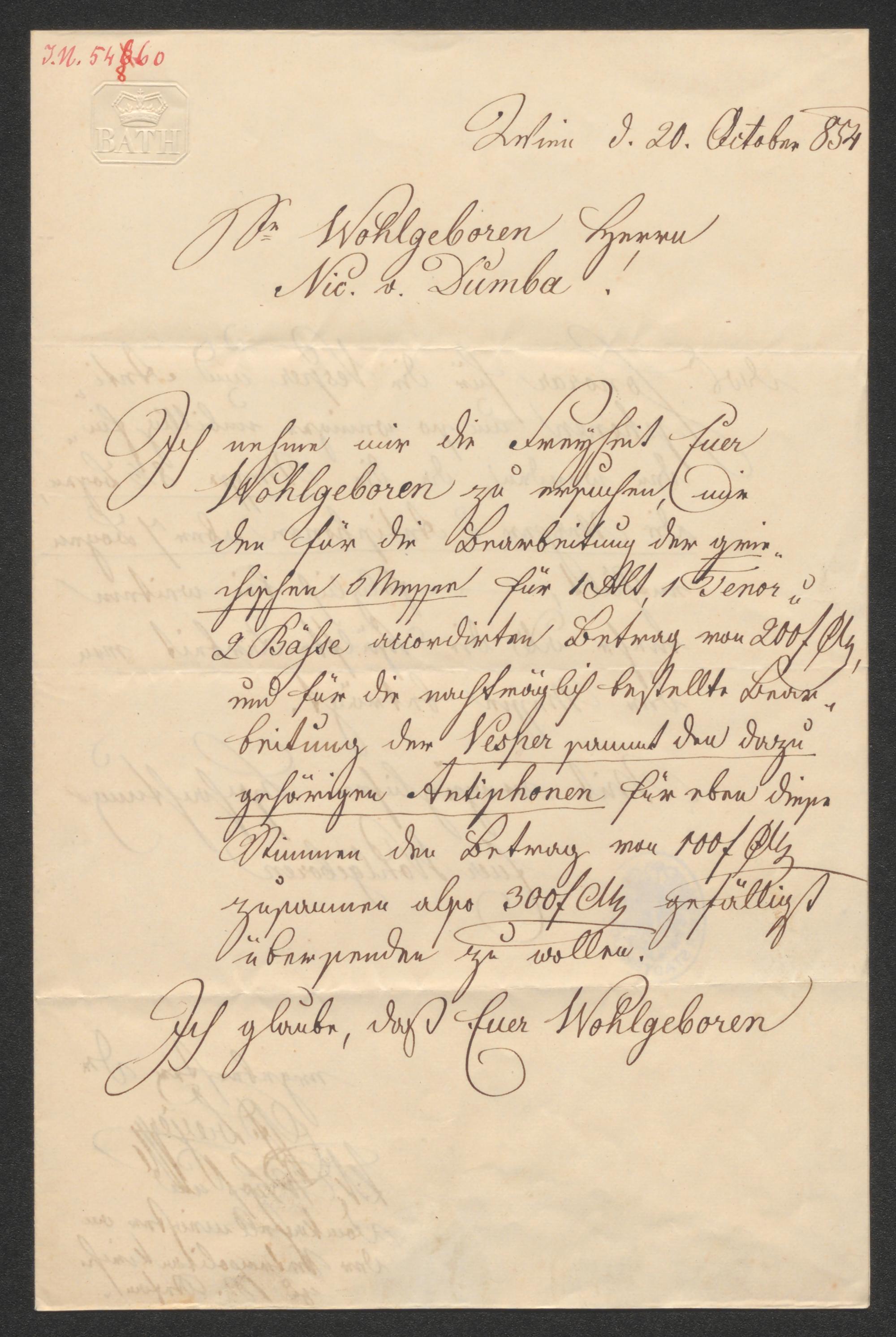 Brief an Nikolaus Dumba