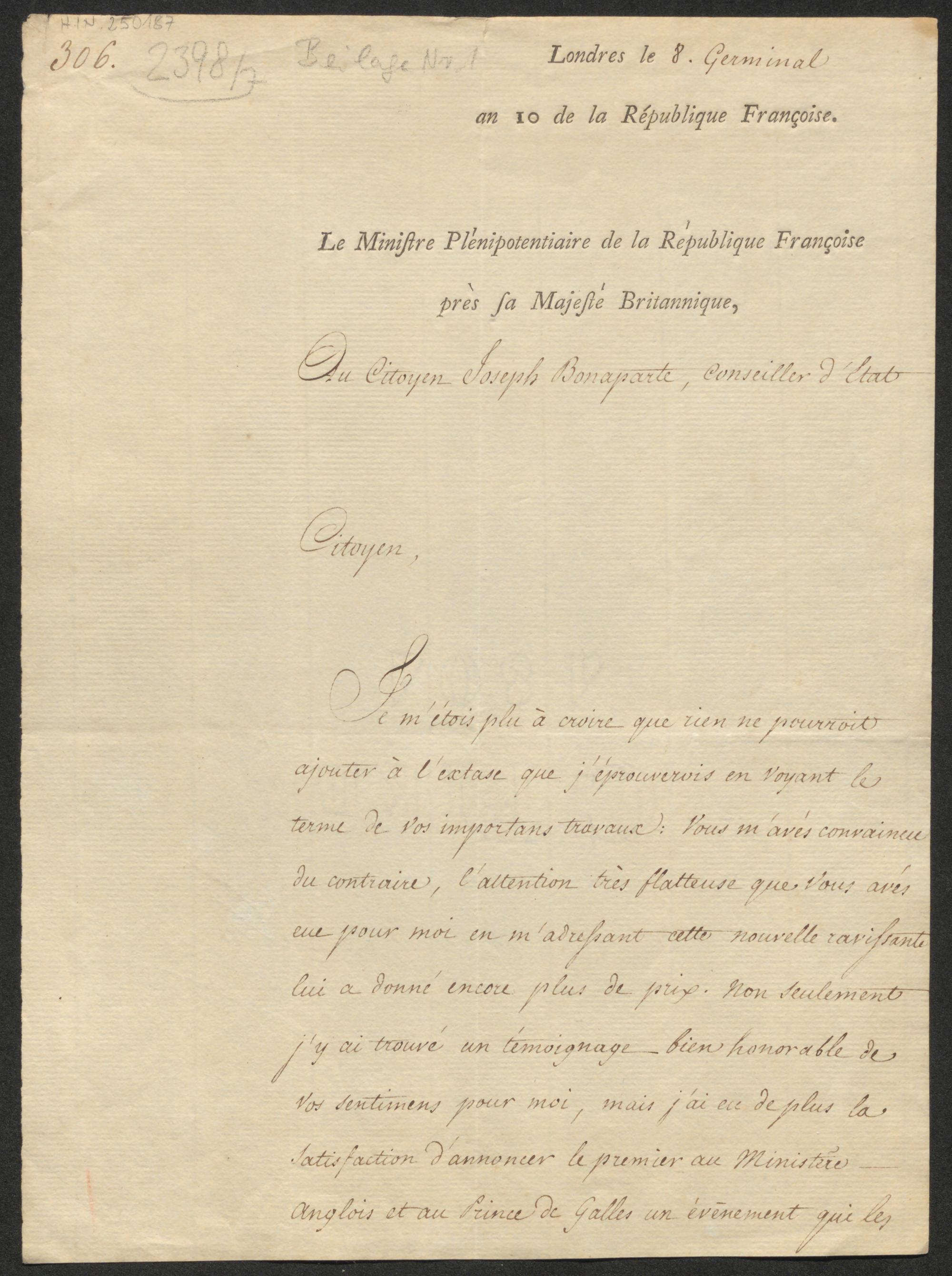 Brief von Louis-Guillaume Otto an Joseph Bonaparte