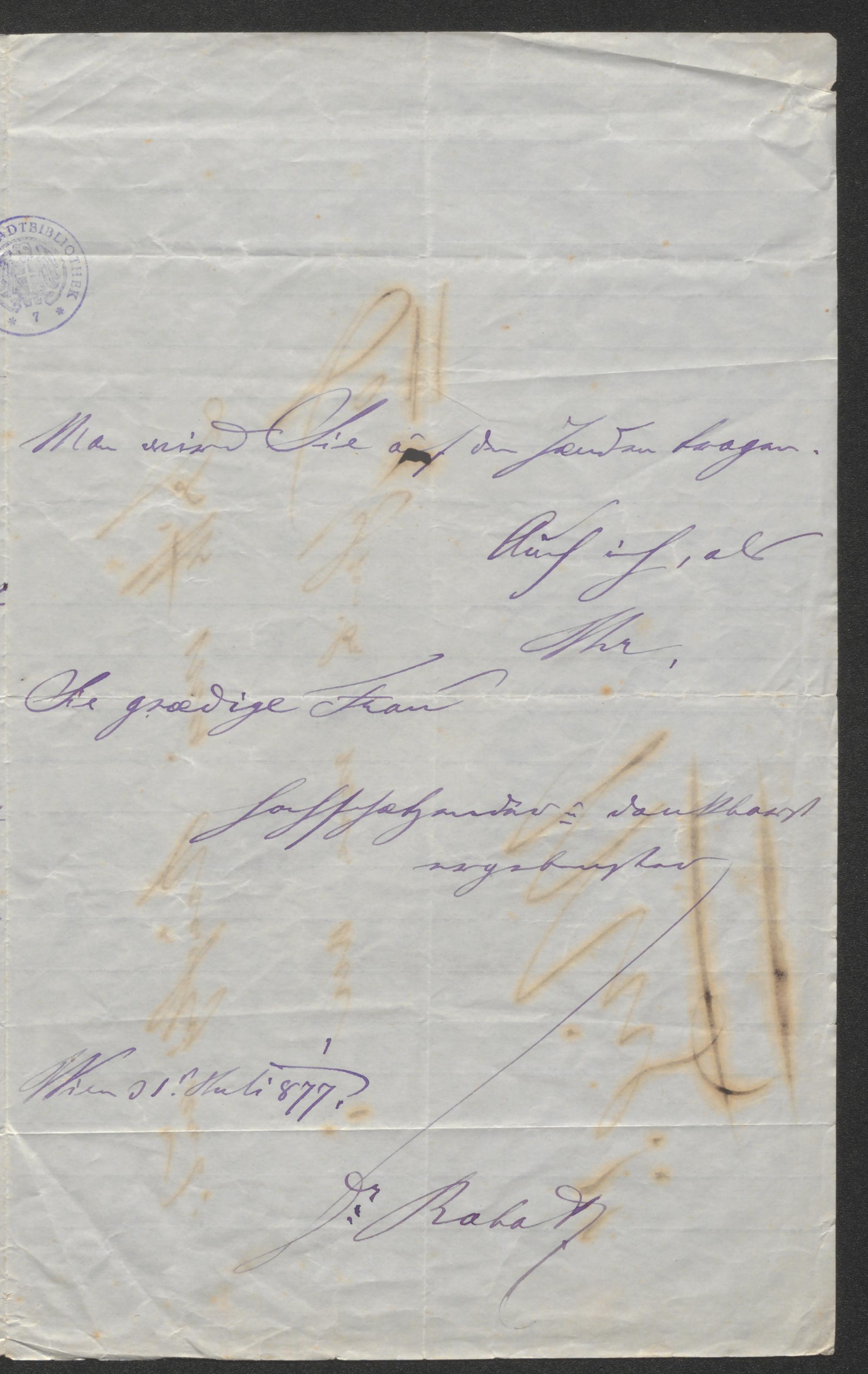 Brief an Auguste Wilbrandt-Baudius