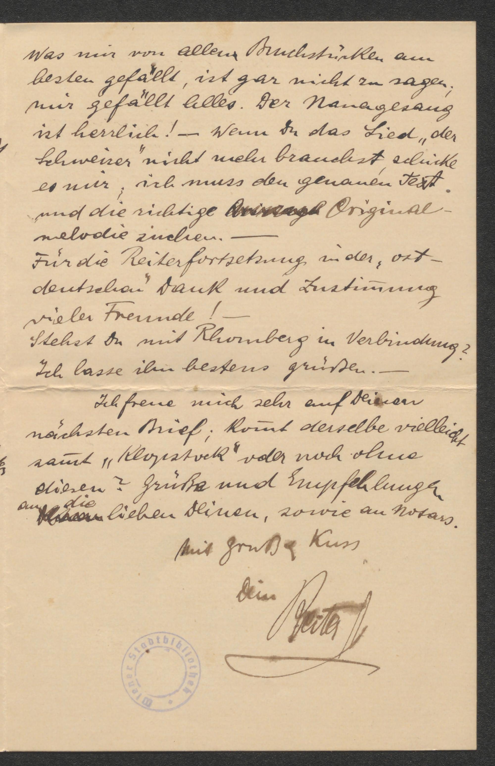 Brief an Max von Millenkovich-Morold