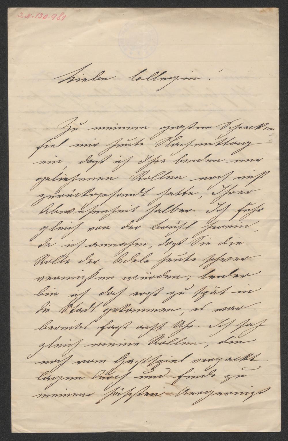 Brief an Auguste Wilbrandt-Baudius
