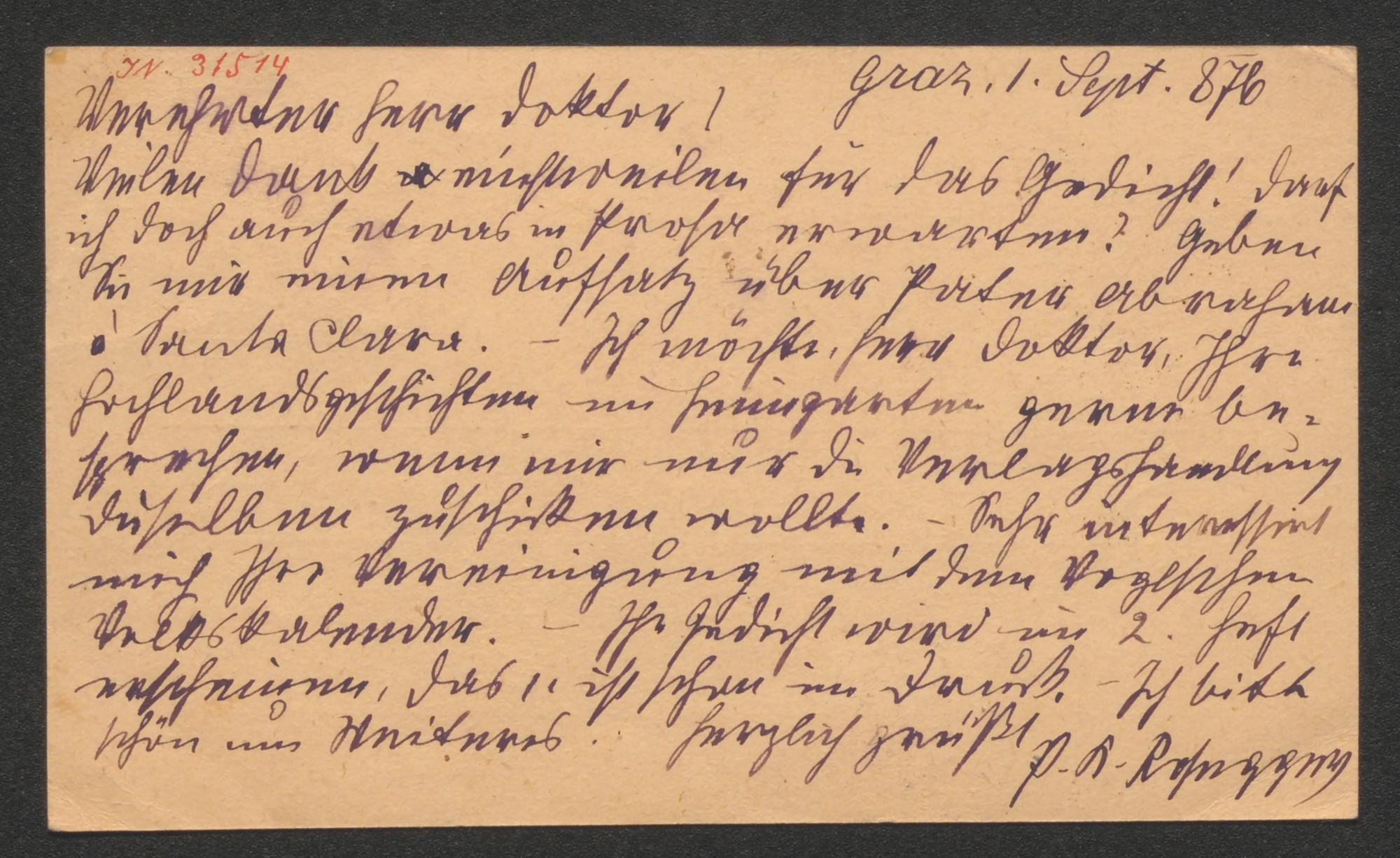 Postkarte an August Silberstein