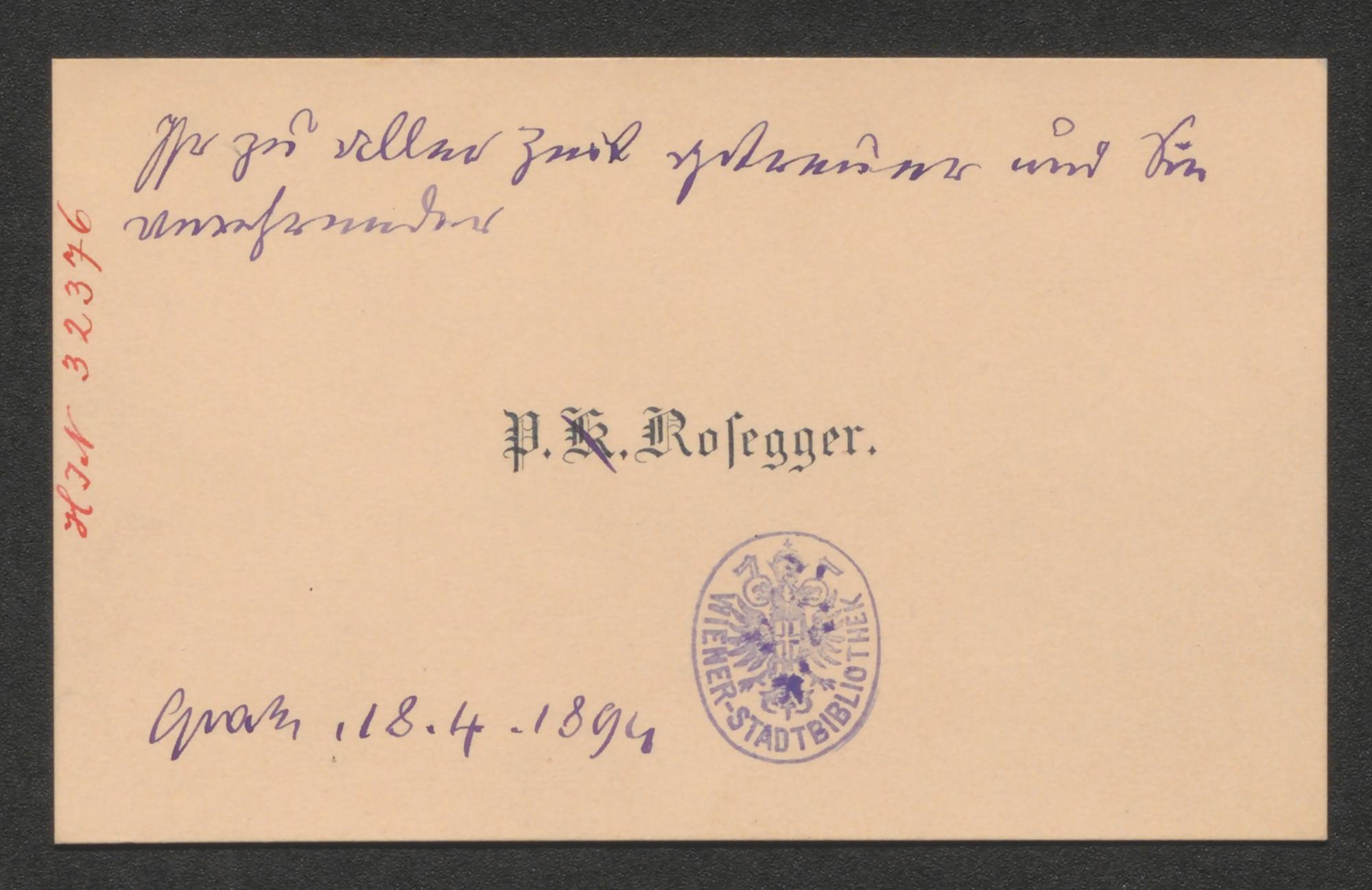 Visitenkarte an August Silberstein