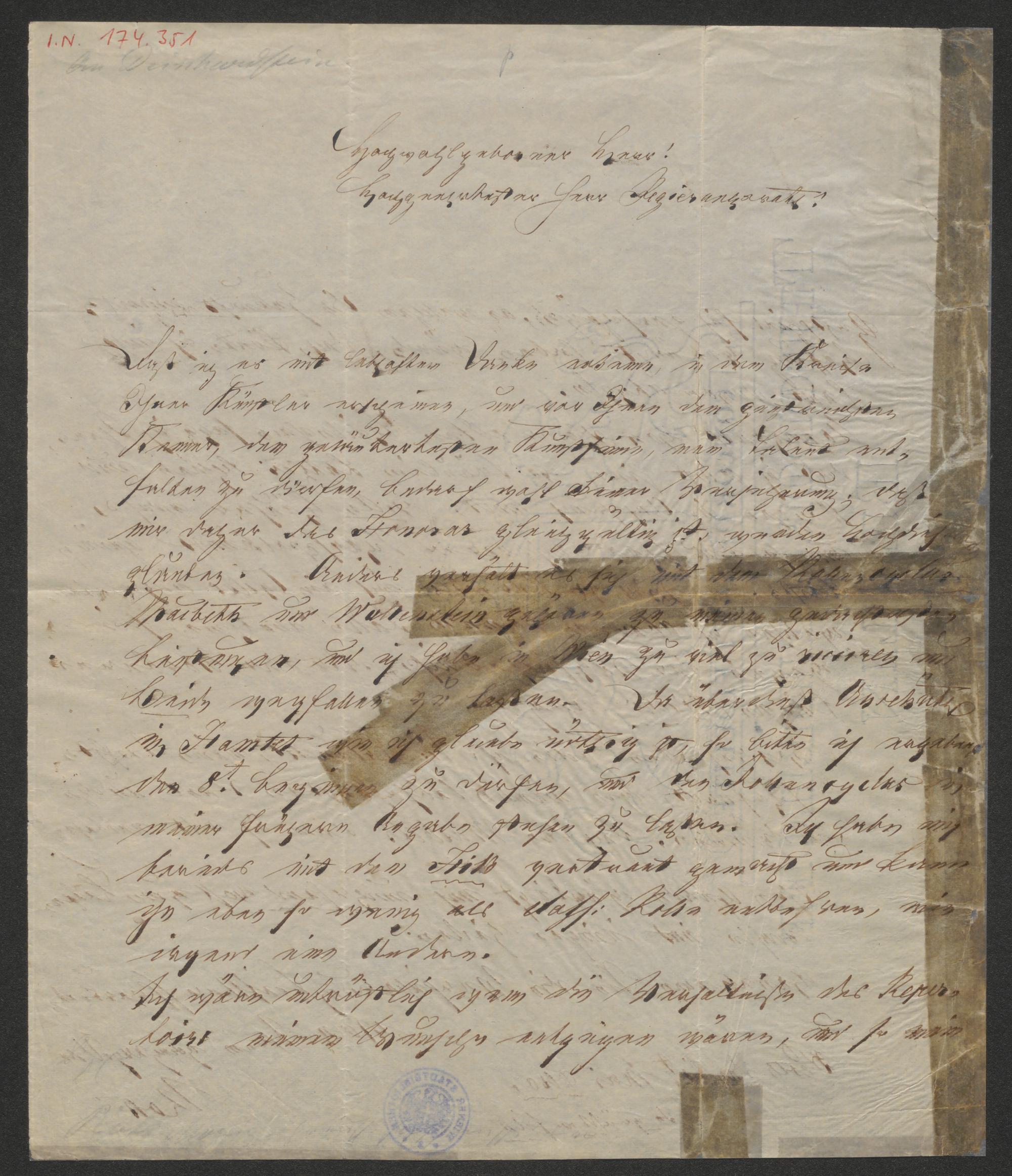 Brief an Johann Ludwig Deinhardstein