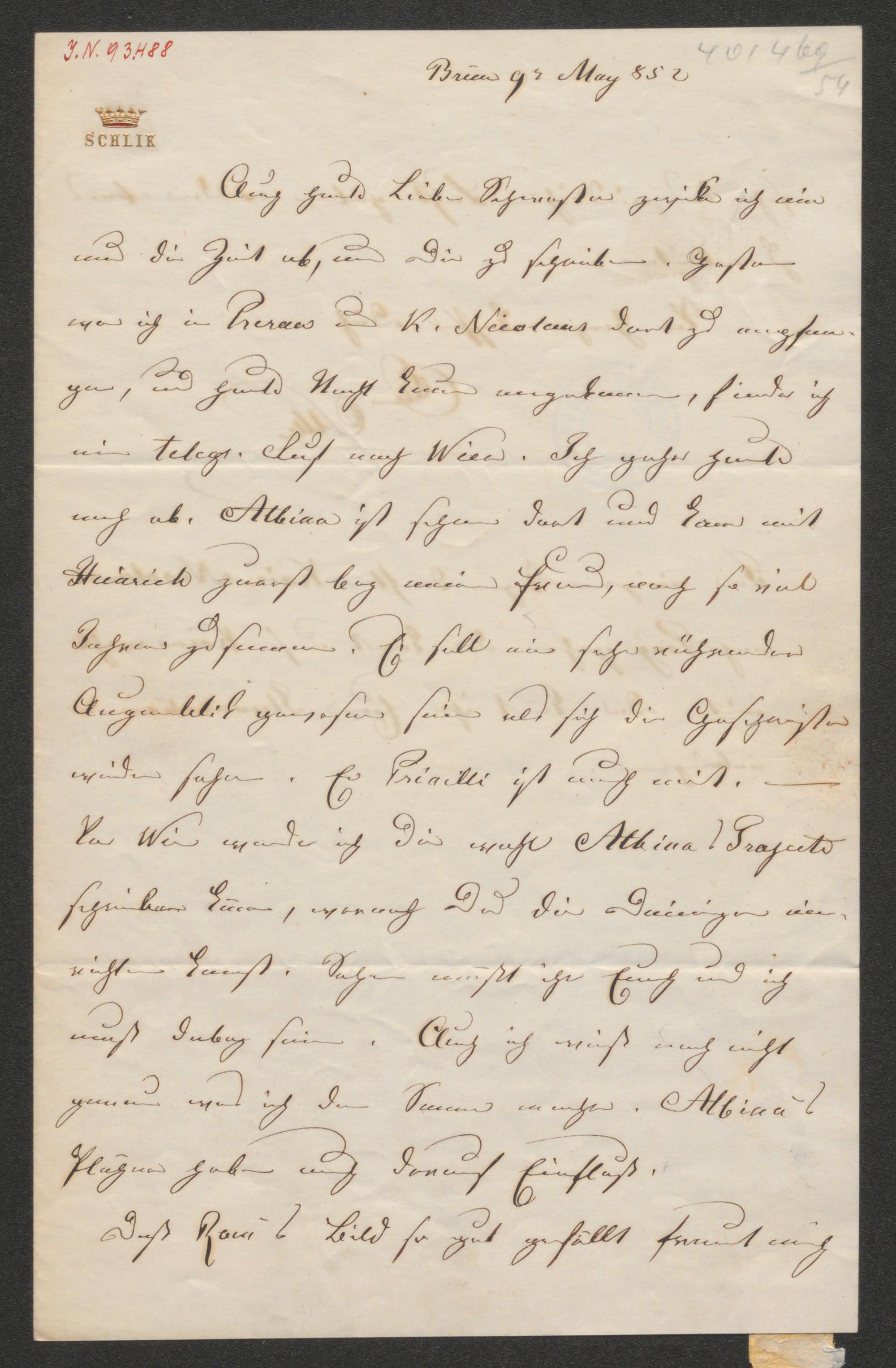 Brief an Elise Schlick