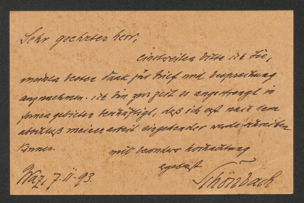 Korrespondenzkarte an Moritz Necker