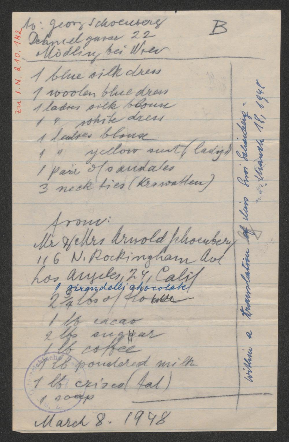 Brief an Georg Schönberg