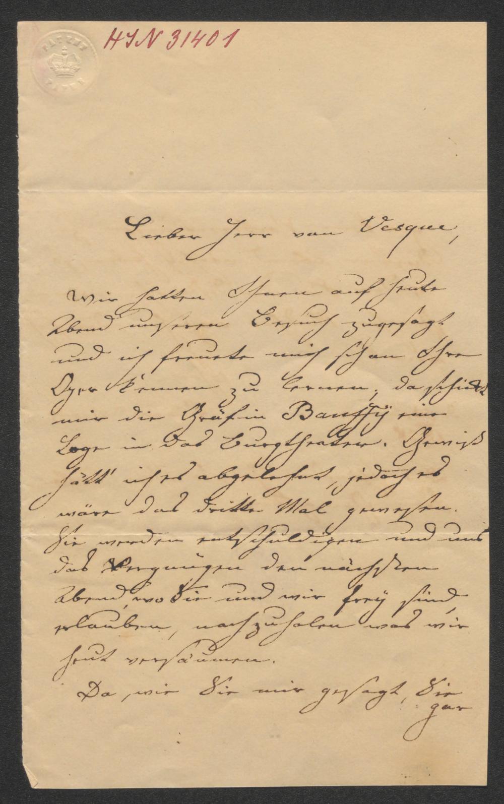 Brief an Johann Vesque von Püttlingen