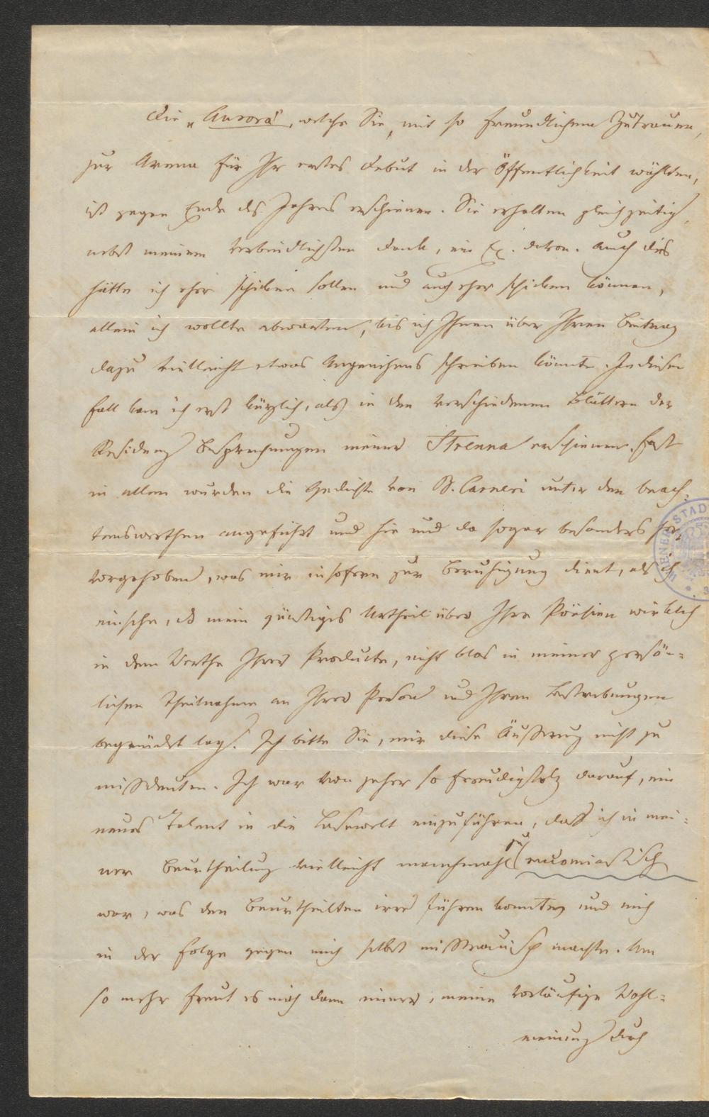 Brief an Bartholomäus von Carneri