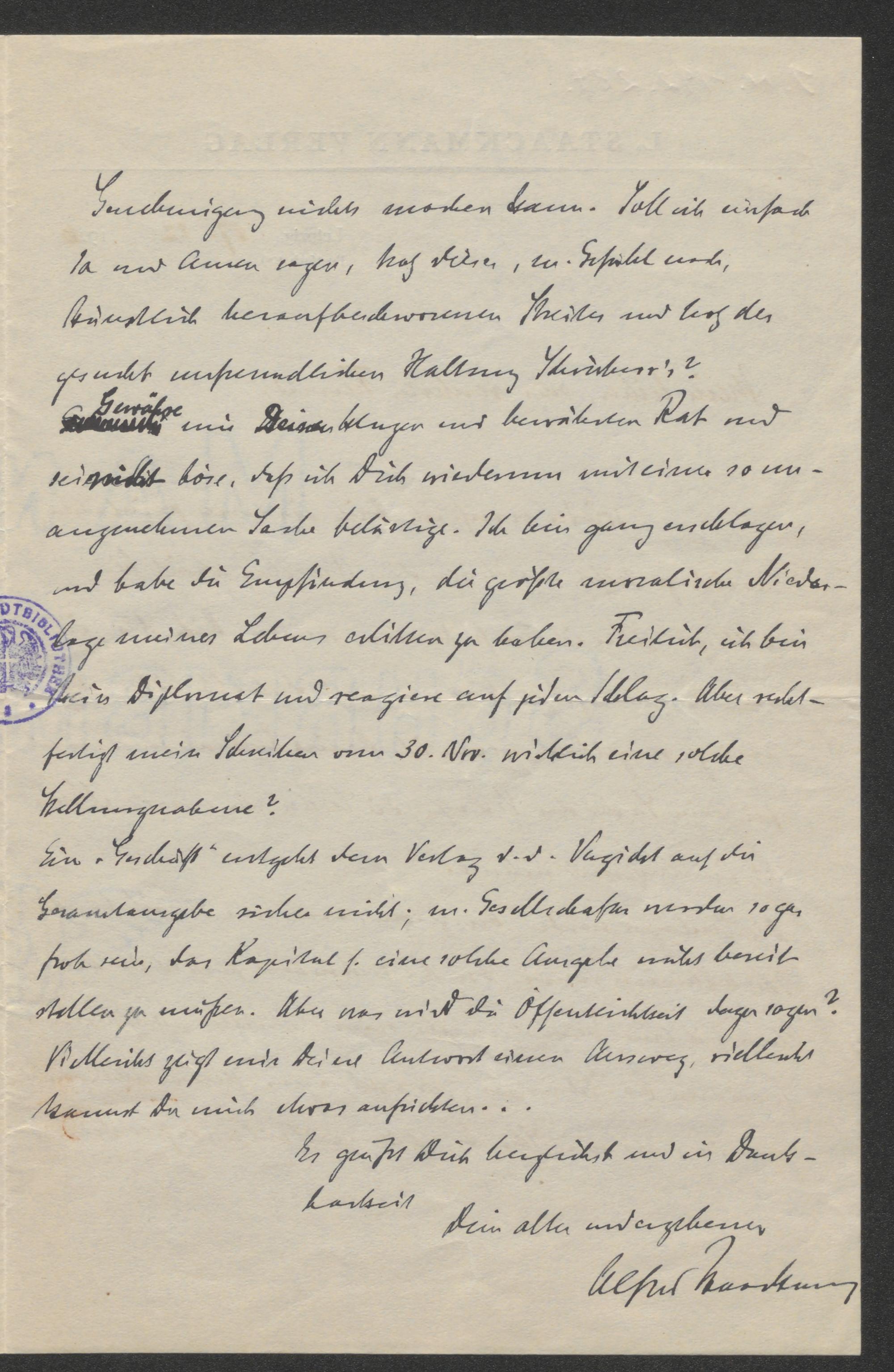 Brief an Franz Karl Ginzkey