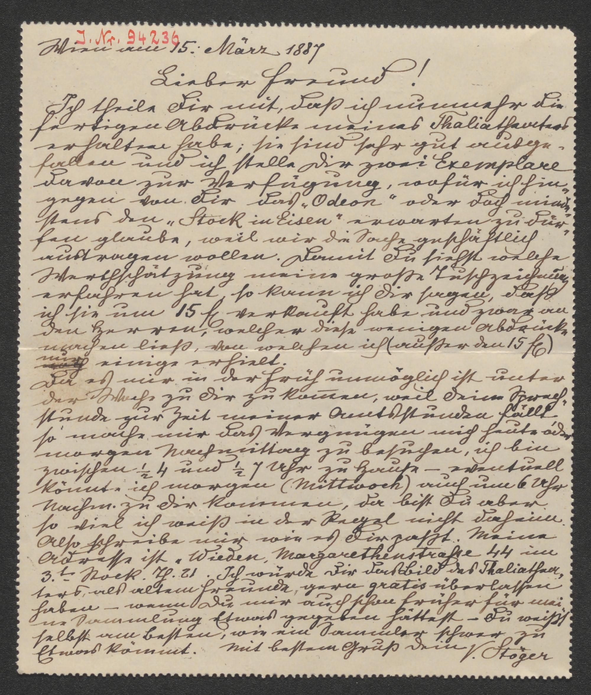 Kartenbrief an Nikolaus Oesterlein