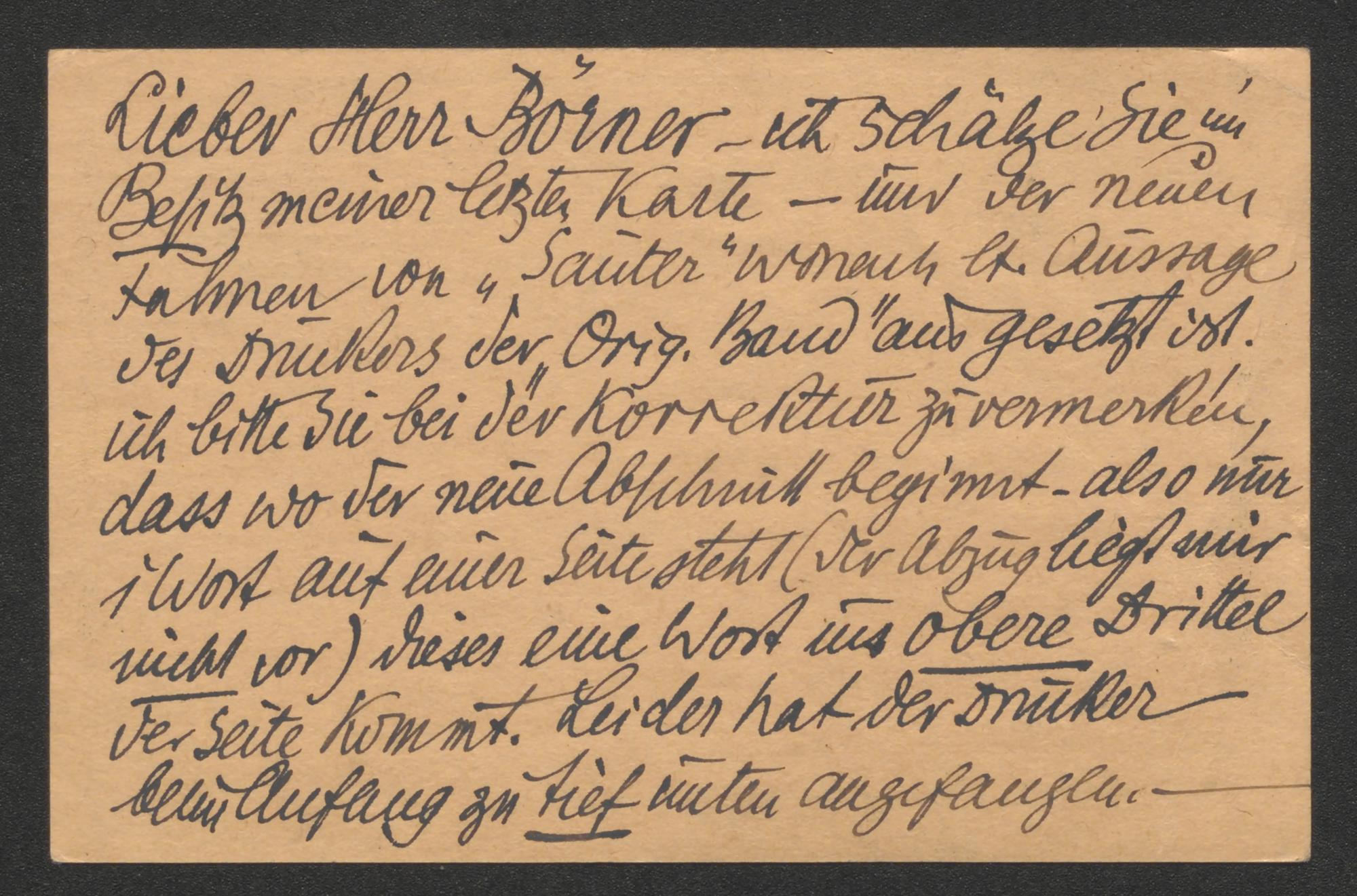 Postkarte an Wilhelm Börner