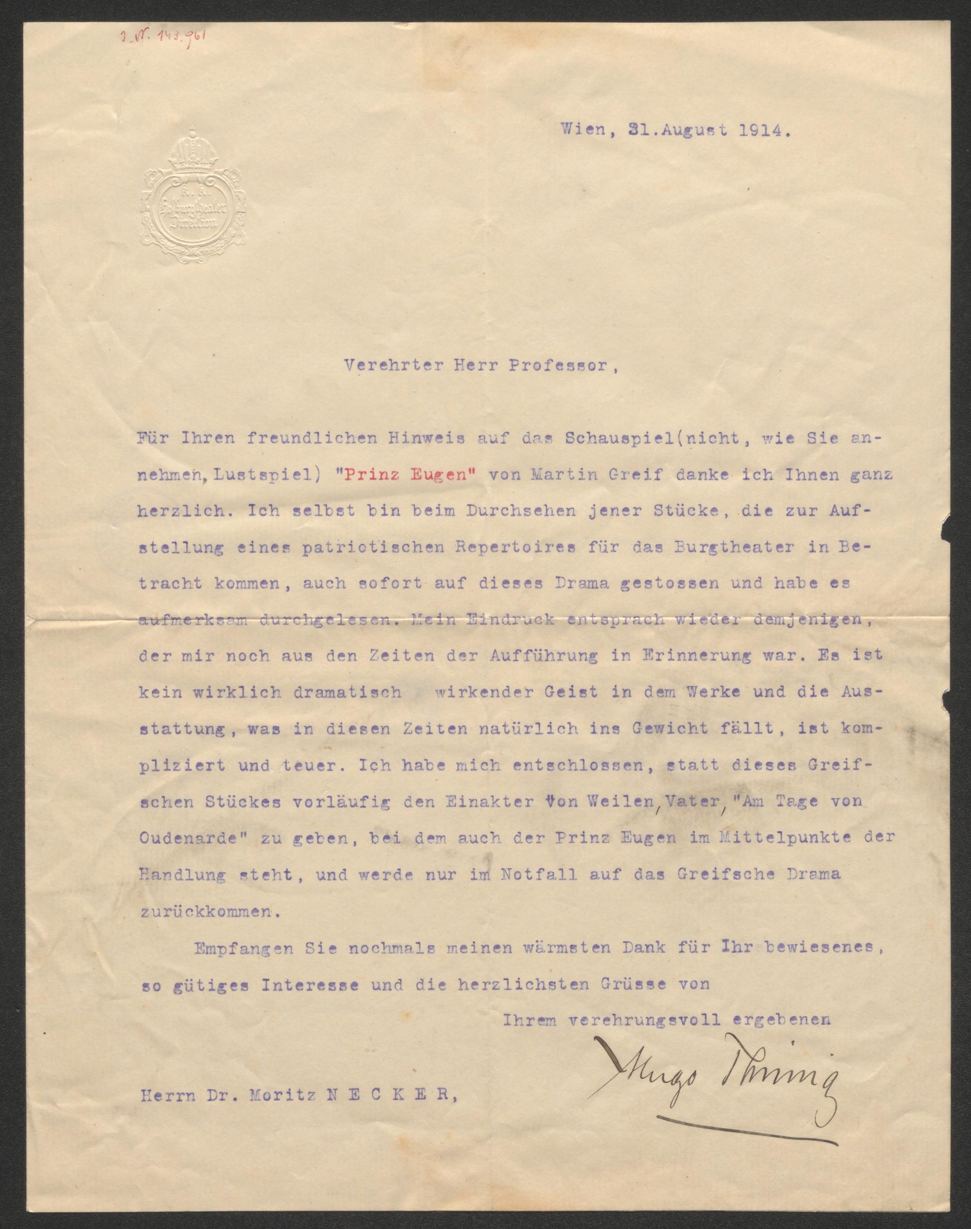Brief an Moritz Necker
