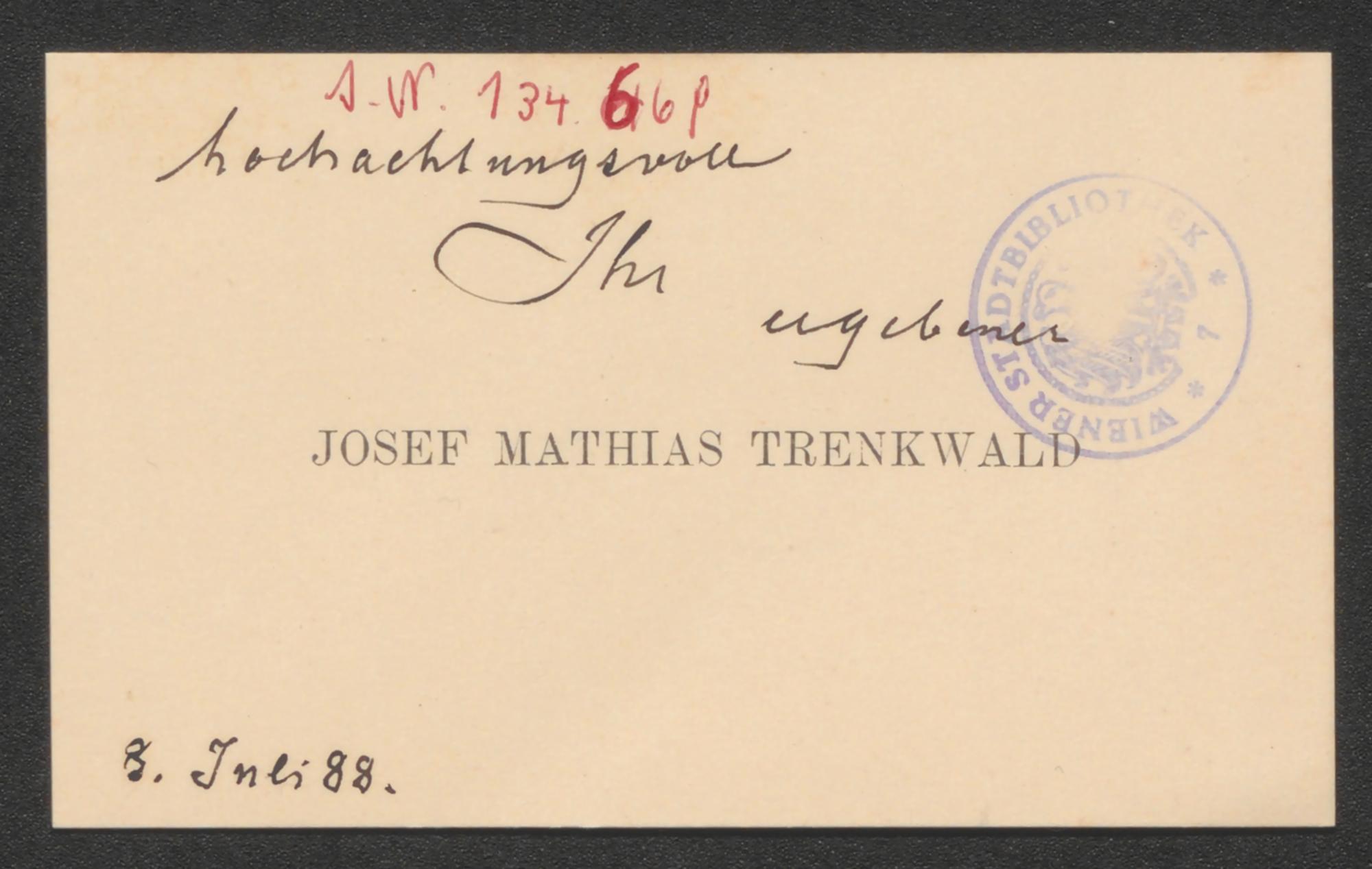 Visitenkarte an Matthäus Much