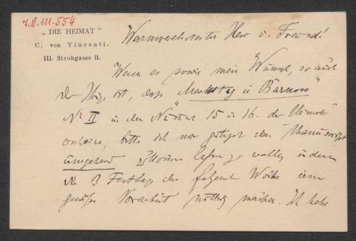 Billett an Karl Emil Franzos