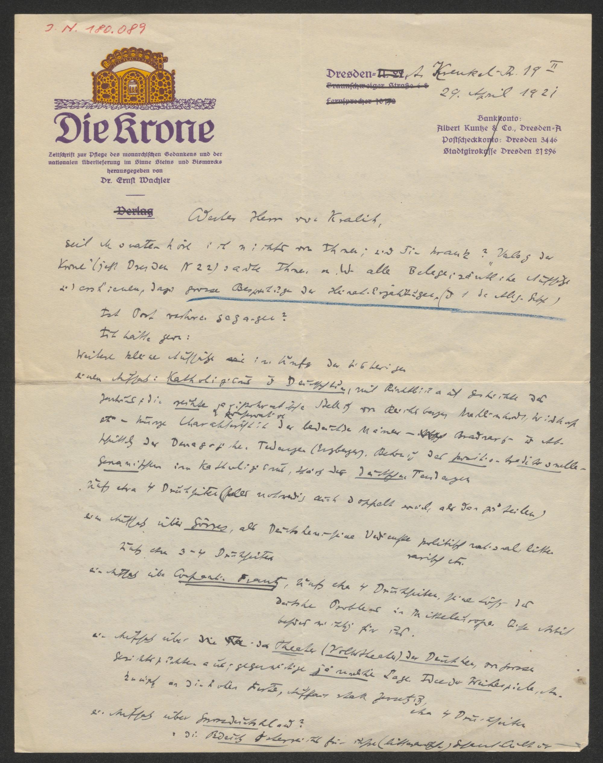 Brief an Richard von Kralik