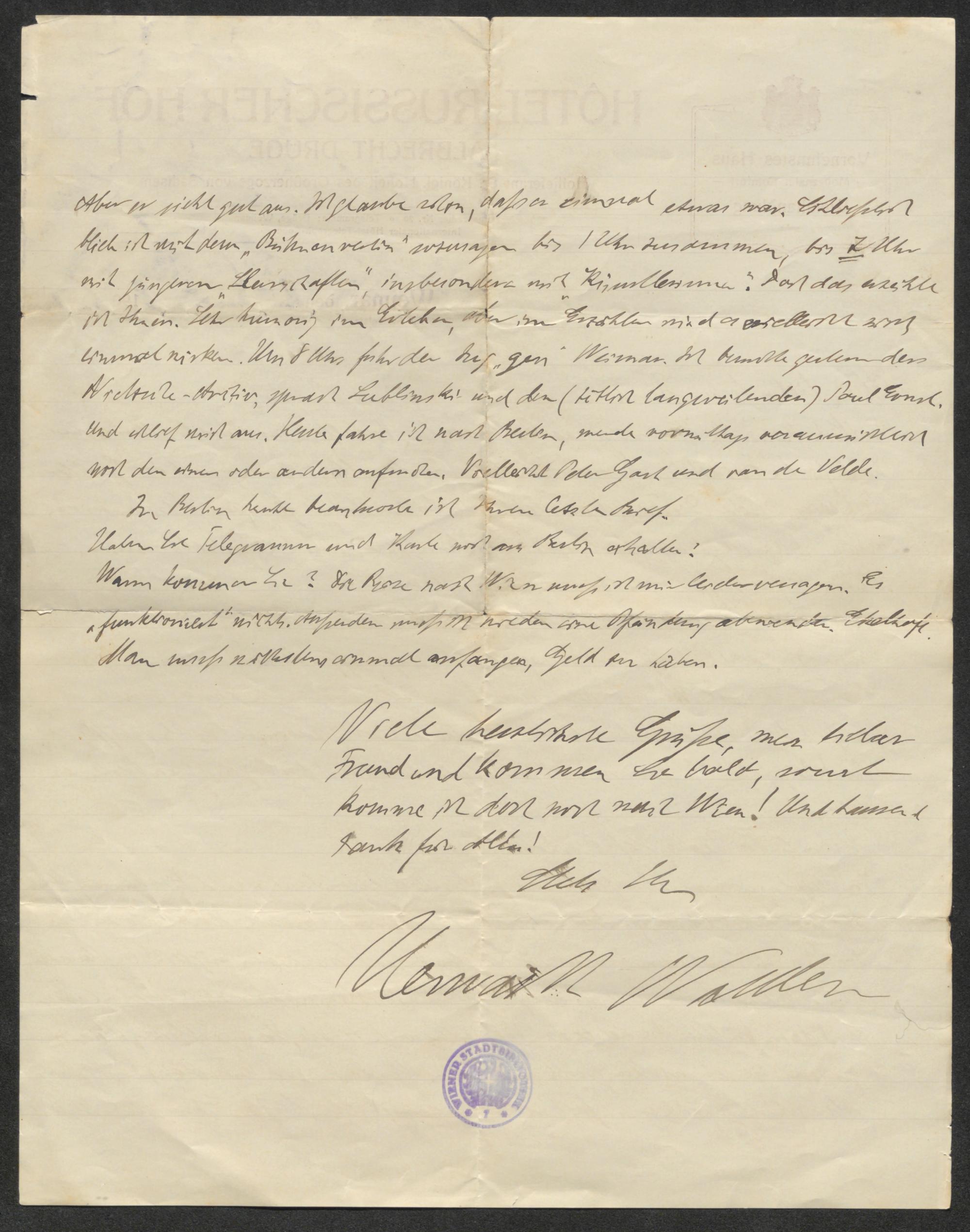 Brief an Karl Kraus