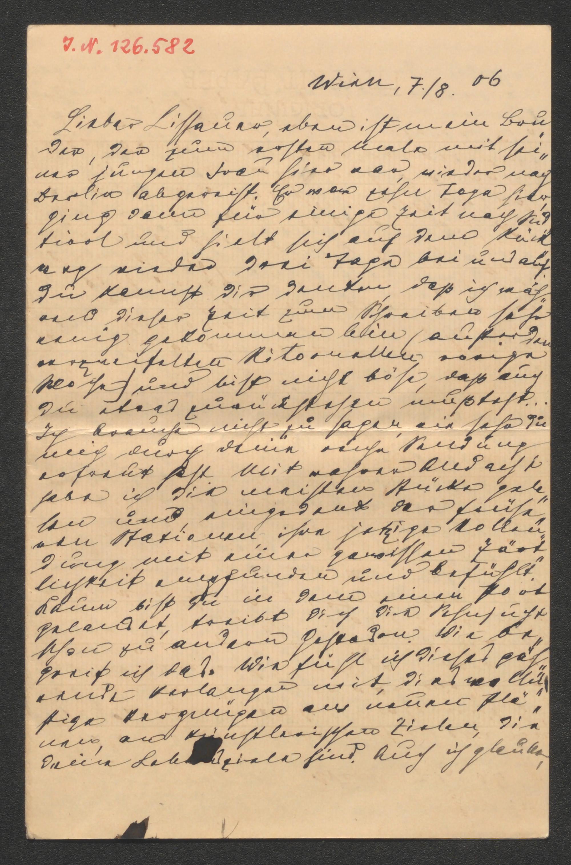 Brief an Ernst Lissauer
