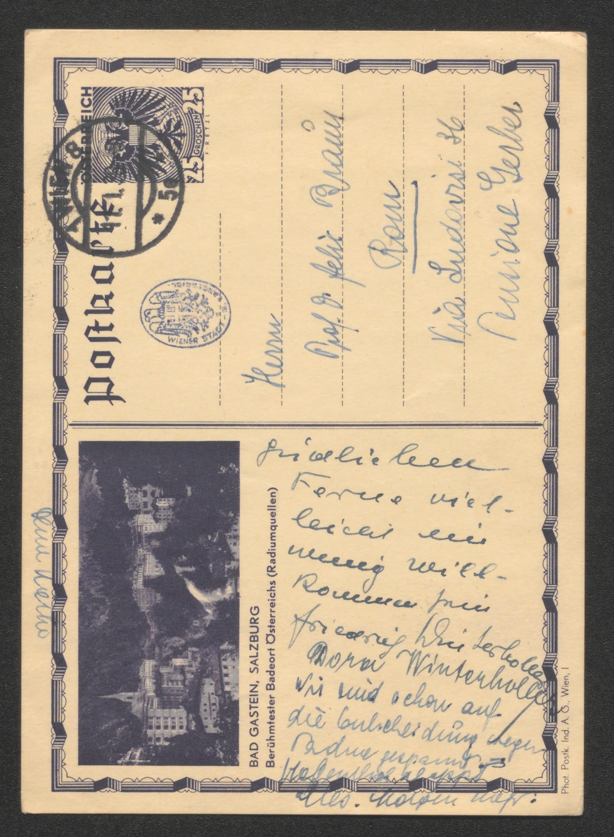 Postkarte an Felix Braun