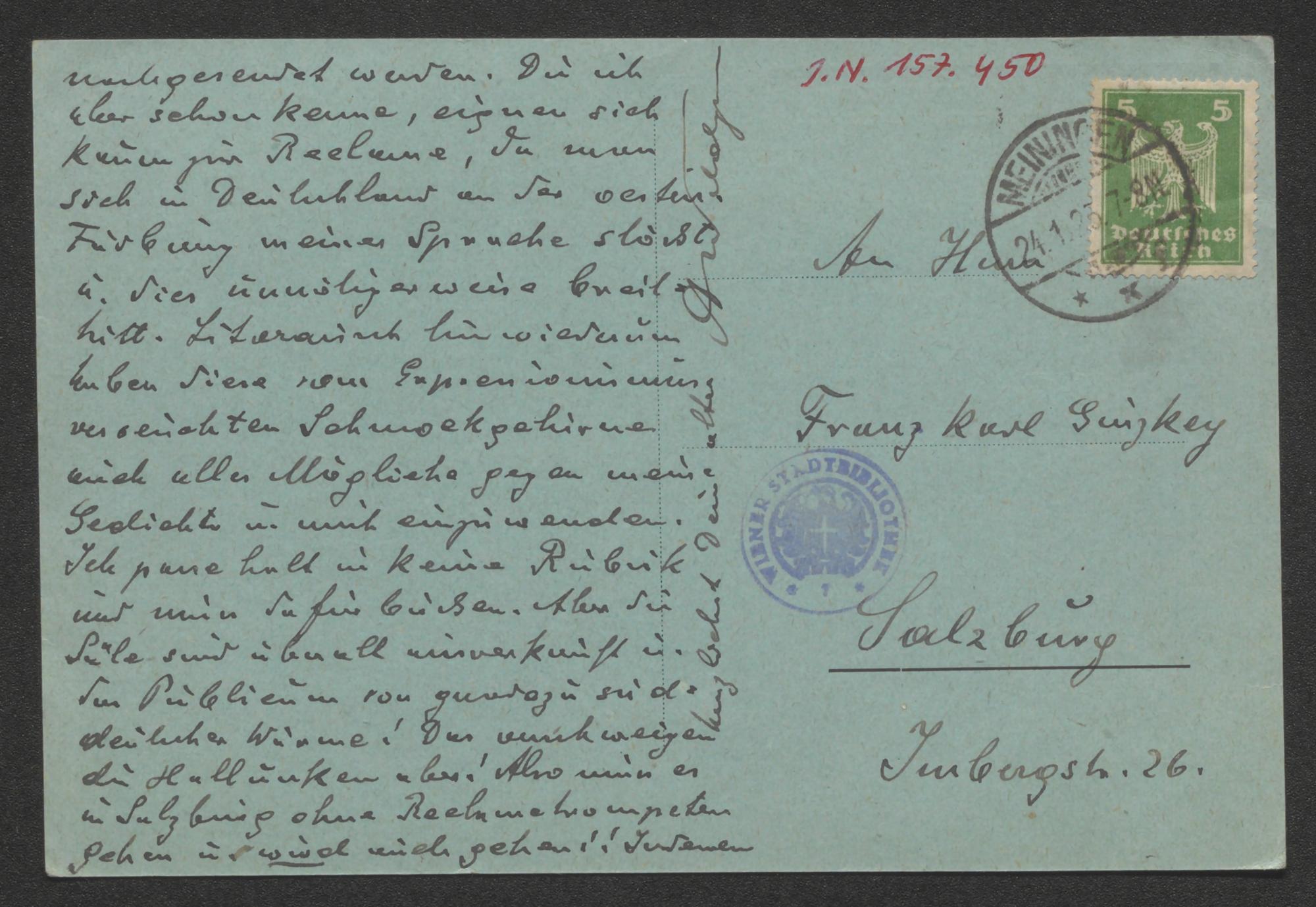 Postkarte an Franz Karl Ginzkey