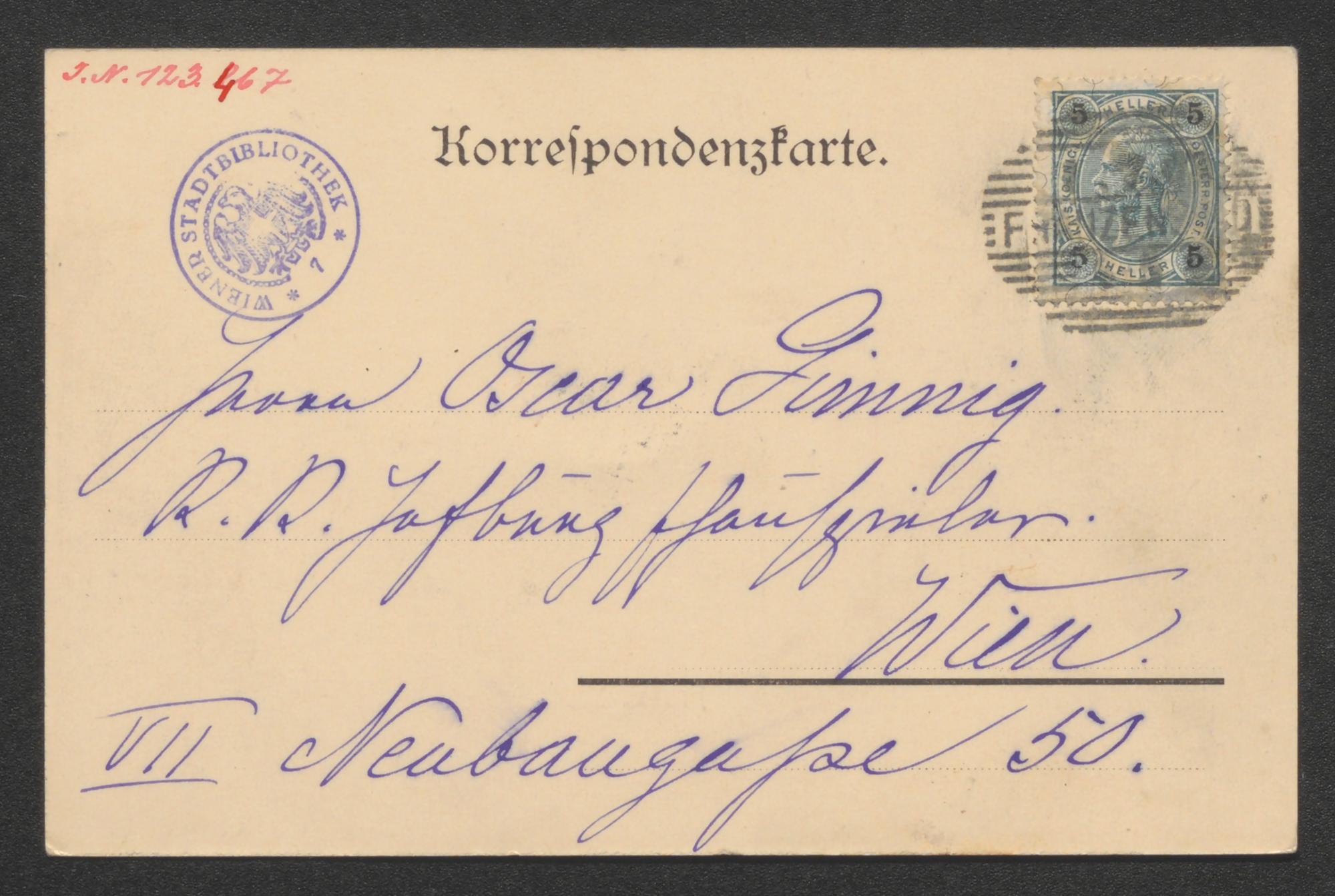 Postkarte an Oskar Gimnig