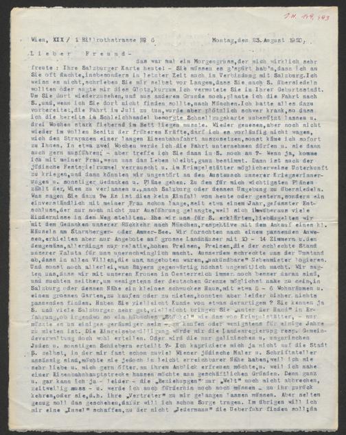 Brief an Fritz Hegenbart