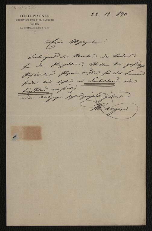 Wagner, Otto: Brief an Unbekannt. Wien, 22.12.1890