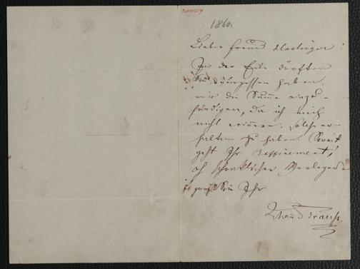 Strauss, Johann: Brief an Karl Haslinger. o.O., 1860