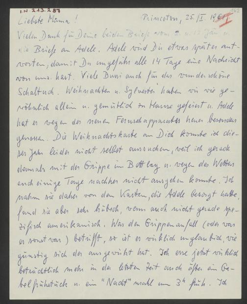 Gödel, Kurt: Brief an Marianne Gödel. Princeton, NJ, 25.1.1961