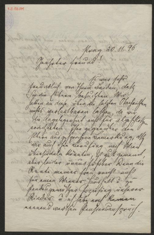 Adler, Guido: Brief an Friedrich Jodl. Prag, 20.11.1896