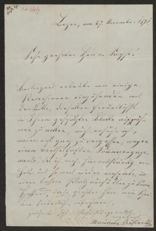 Austerlitz, Marianne: Brief an Carl Albert Sachse. Bozen, 27.11.1871