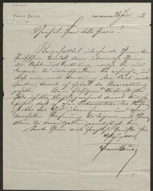 Bauer, Franz: Brief an Marie Eugenie delle Grazie. 26.6.1882