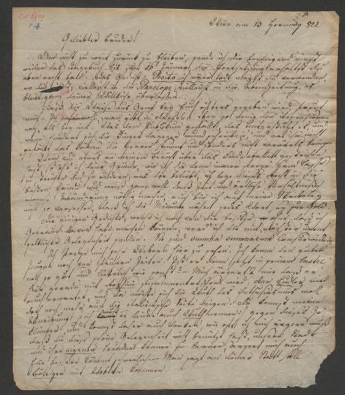 Castelli, Ignaz Franz: Brief an Theodor Hell. Wien, 1822.°°.13