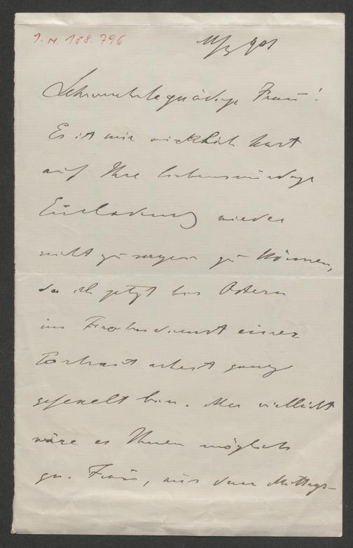 Delug, Alois: Brief an Maia von Kralik. o.O., 11.3.1901