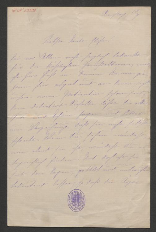 Dingelstedt, Susanne von: Brief an Elise Döbler. o.O., °°°°.09.18