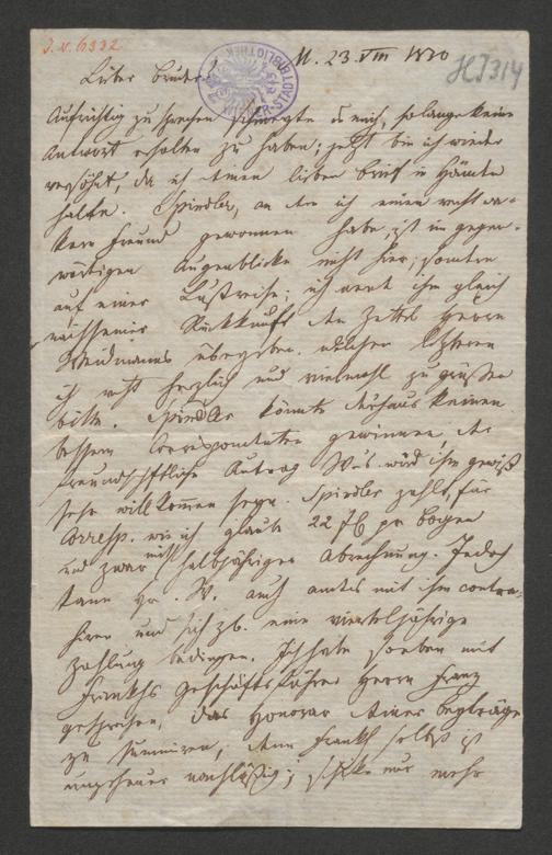 Duller, Eduard: Brief an Johann Nepomuk Vogl. München, 23.8.1830