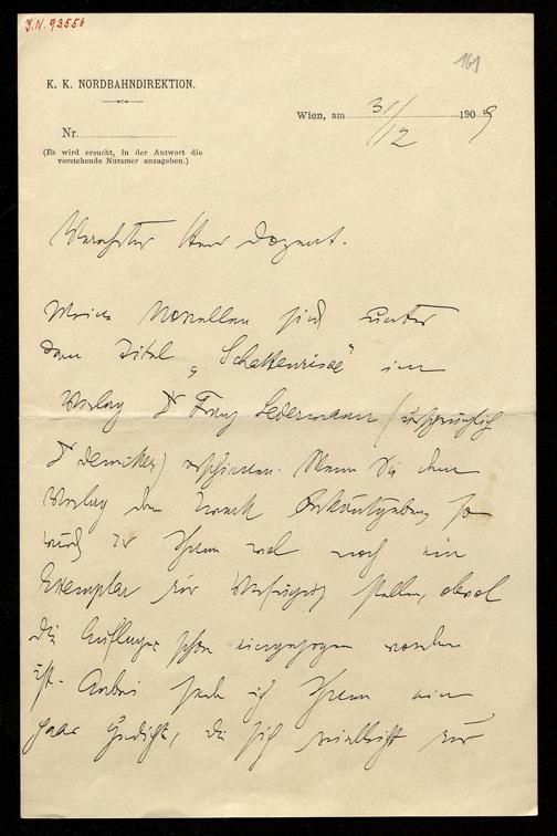 Bendiener, Oscar: Brief an Unbekannt. Wien, 31.12.1909