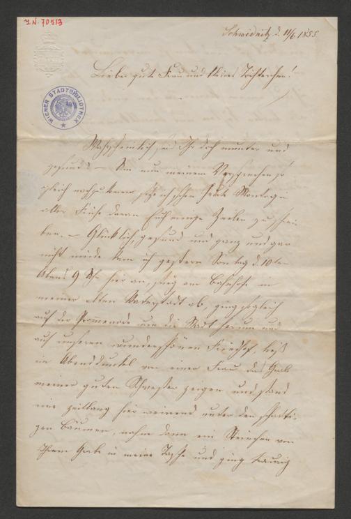 Fickert, Wilhelm: Brief an Louise Luhde. Schwidnitz, 11.6.1855