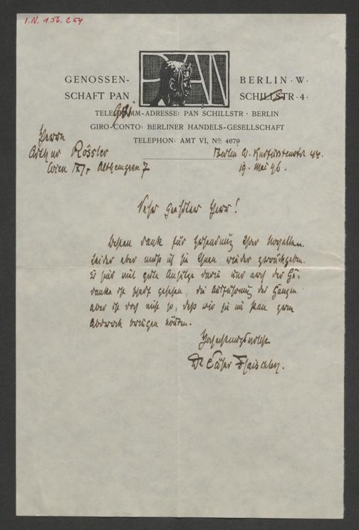 Flaischlen, Cäsar: Brief an Arthur Roessler. Berlin, 19.5.1896