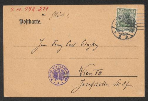 Gregori, Ferdinand: Postkarte an Franz Karl Ginzkey. Mannheim, 11.2.1911