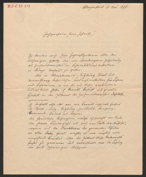 Grandauer, Josef: Brief an Rudolf Eitelberger von Edelberg. Klagenfurt, 12.5.1876