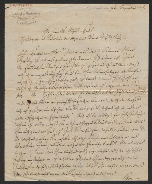 Gassner, Ferdinand Simon: Brief an August Schmidt. Karlsruhe, 9.11.1841