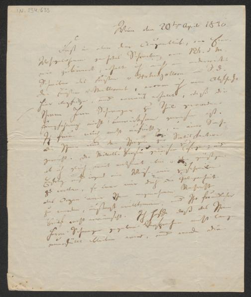 Bl. 1r: "[...] Ich freue mich recht aufrichtig, in einer Sache die Ihnen und den Ihrigen zur Satisfaction gereicht, die Mittels-Person gewesen zu seyn [...] Ich hoffe daß das Ihrem Herrn Schwager gegebene Versprechen nicht lange unerfüllt bleiben wird [...]"
