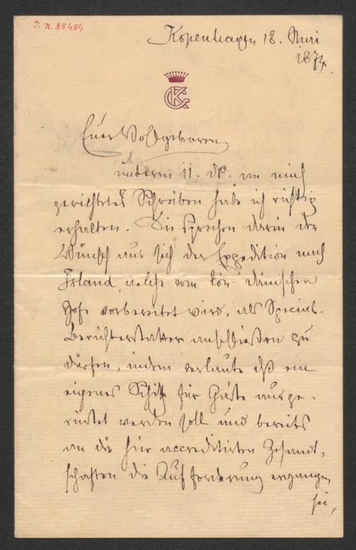 Kálnoky von Köröspatak, Gustav: Brief an Unbekannt. Kopenhagen, 18.5.1874