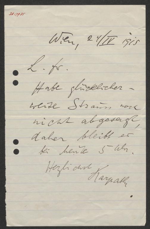 Karpath, Ludwig: Brief an Felix von Weingartner. Wien, 29.4.1915