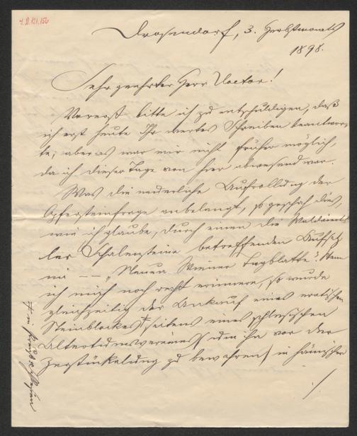 Kießling, Franz Xaver: Brief an Matthäus Much. Drosendorf, 1898.°°.03