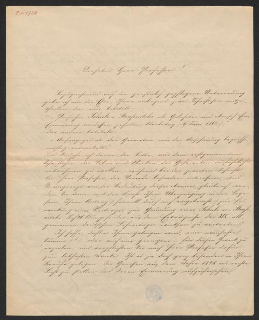 Kessler, Engelbert: Brief an Ludwig Eckardt. Wien, 7.9.1870