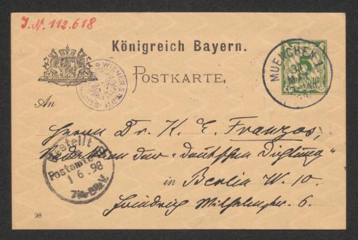 Kohlrausch, Robert: Postkarte an Karl Emil Franzos. München, 31.5.1898