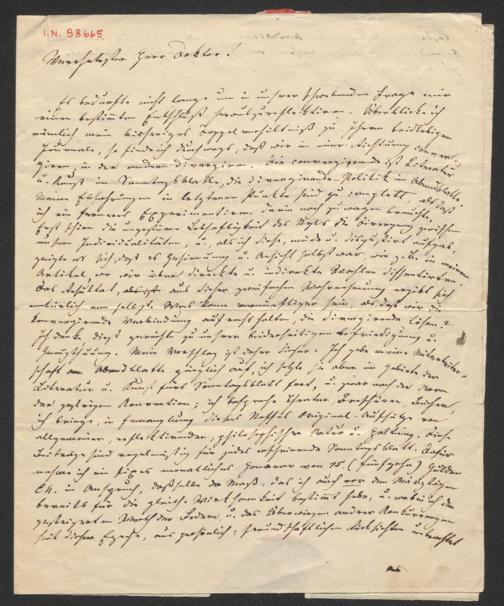 Kürnberger, Ferdinand: Brief an Ludwig August Frankl von Hochwart. o.O., o.D.